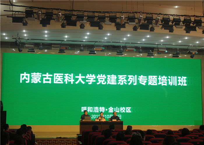 2018年10月23日上午,在金山校区交流中心多功能厅,举办了学校党员领导干部和基层党务工作者培训班,各学院党总支、直属党支部、直属附属医院党委,各单位分管统战工作负责人和统战委员,辅导员及部分学生干部200余人参加了学习培训。学校党委书记乌兰做了开班讲话。