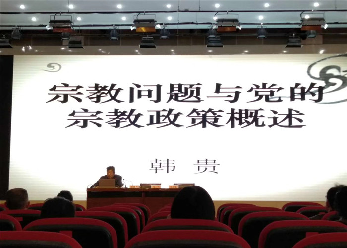 培训班第一课由我校党委统战部部长韩贵宣讲民族宗教理论知识,对宗教问题与党的宗教政策概述做了详细解读。指出宗教工作是基层党组织建设的一项重要工作,各级党委要把宗教工作纳入重要议事日程,把党关于宗教问题的理论和方针政策纳入干部教育培训计划,使各级干部尽可能多地掌握这方面的知识。并在培训结束后统战部向参会人员发放了《统一战线工作条例汇编》。