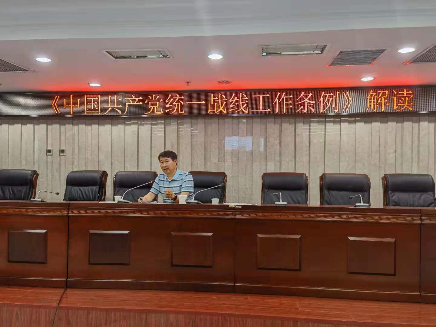 李存保部长从“《条例》修订的背景、意义,统一战线的地位作用,加强党对统一战线工作的集中统一领导,各领域统战工作的主要任务和着力重点,《条例》修订前后对照介绍”等方面,进行了全面系统的阐释和深入浅出的讲解。
