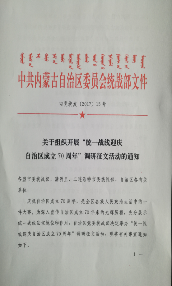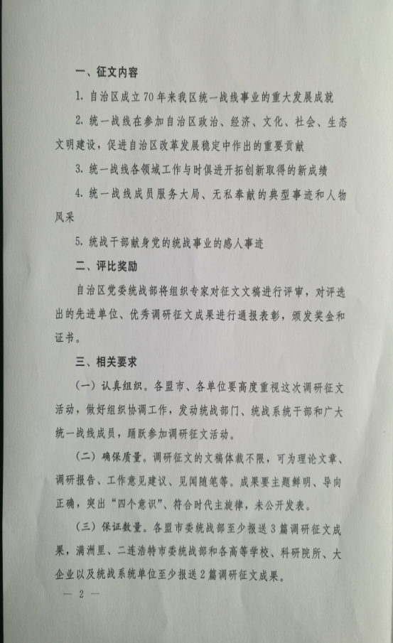 关于组织开展“统一战线迎庆自治区成立70周年”调研征文活动的通知