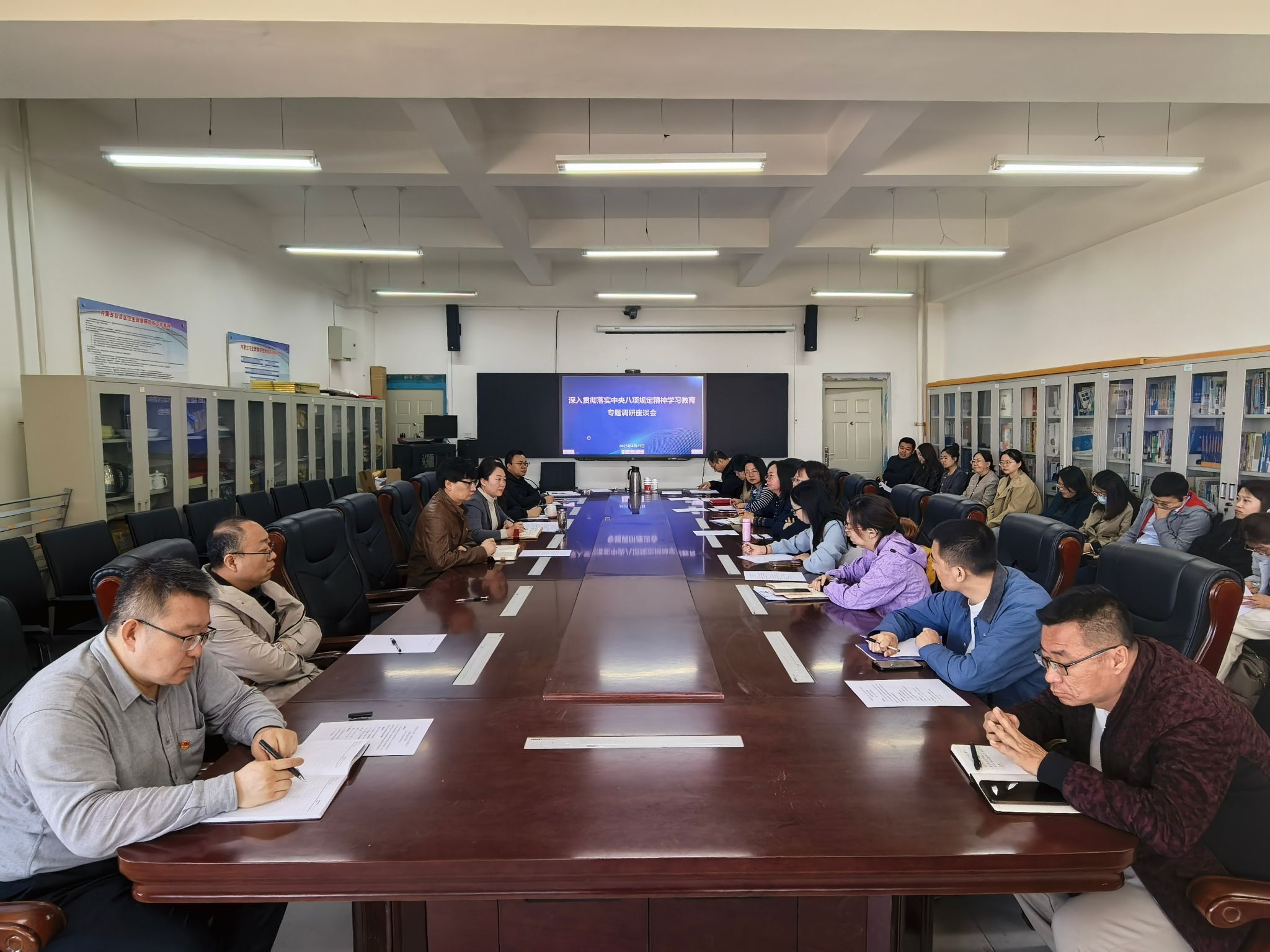 4月25日上午,内蒙古医科大学党委统战部联合科研处召开“深入贯彻落实中央八项规定精神学习教育”专题调研座谈会,科研处处长董玉、统战部副部长胡其图、中共党员和民主党派及无党派科研代表参加,会议由董玉主持。